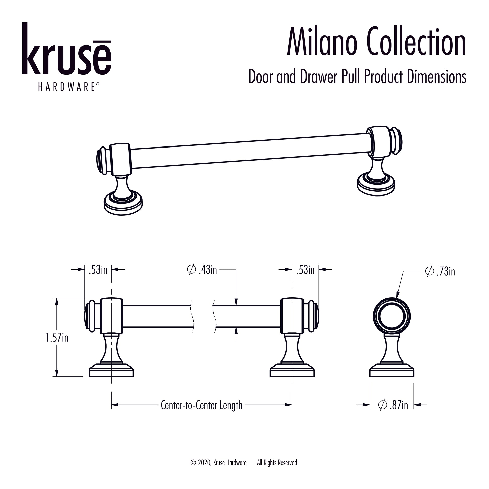 Kruse Hardware sets the bar high with the Milano Collection of Door and Drawer Pulls. Each Pull is made from Zinc and Aluminum Tubing which is then plated and finished with choice of Brushed Satin Nickel, Matte Black, Polished Chrome, Oil Rubbed Bronze or Champagne Bronze for lasting durability.